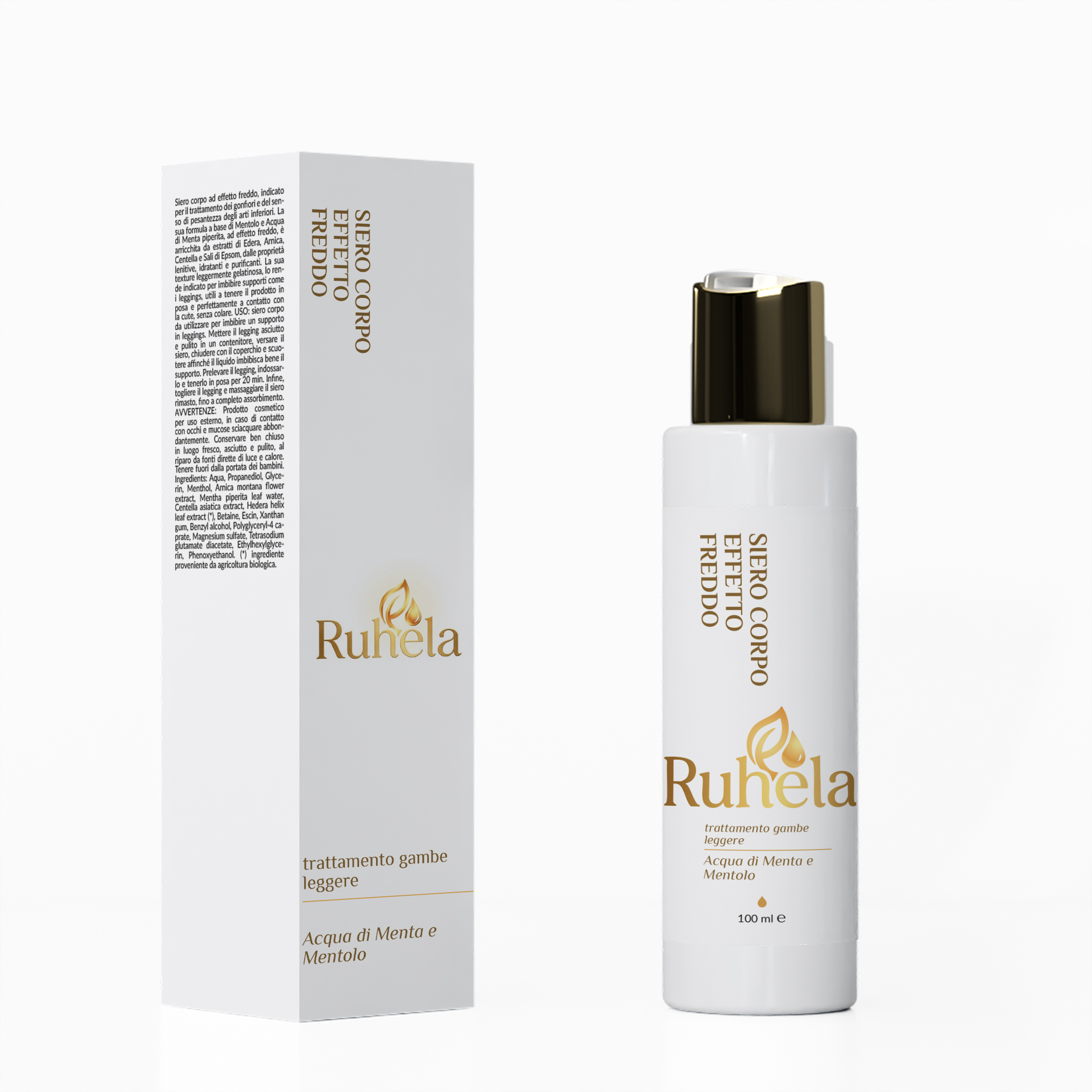 Aqua, Propanediol, Glycerin, Menthol, Arnica montana flower extract, Mentha piperita leaf water, Centella asiatica extract, Hedera helix leaf extract (*), Betaine, Escin, Xanthan gum, Benzyl alcohol, Polyglyceryl-4 caprate, Magnesium sulfate, Tetrasodium glutamate diacetate, Ethylhexylglycerin, Phenoxyethanol.(*) ingrediente proveniente da agricoltura biologica.
